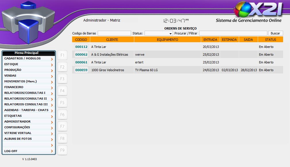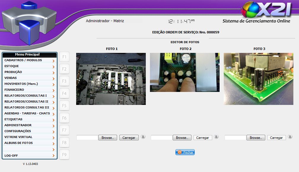Gerador de ordens de serviço com fotos. O cliente pode verificar o estado da ordem de serviço pela internet.