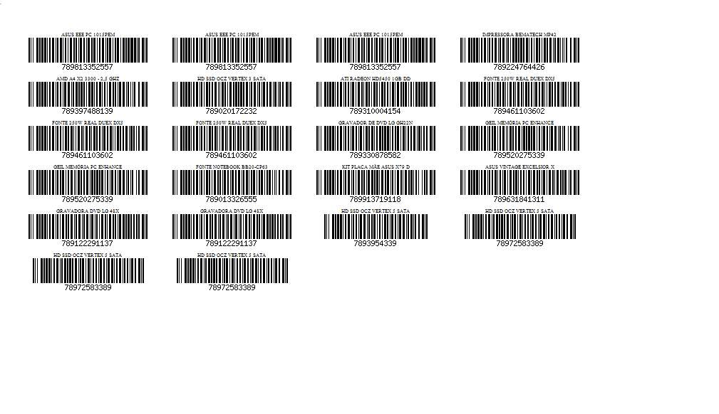 Seleciona e imprime etiquetas com código de barras. (Baseado em etiquetas Pimaco padrão).